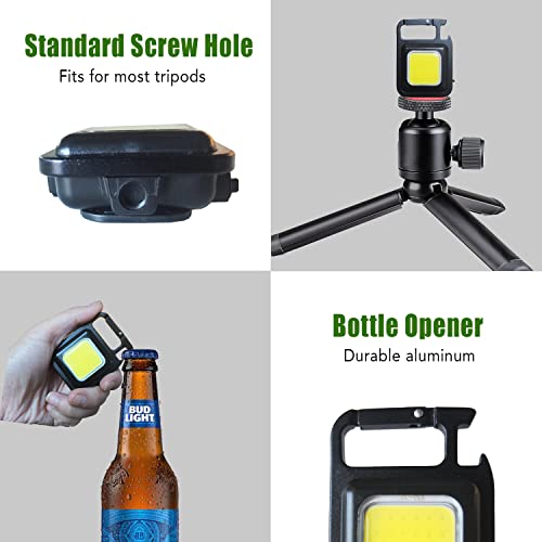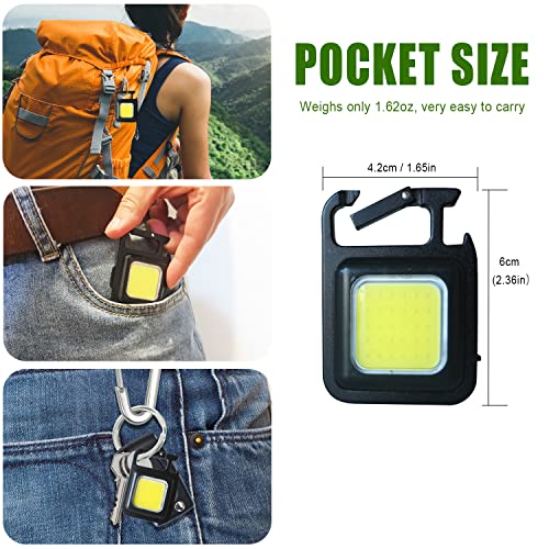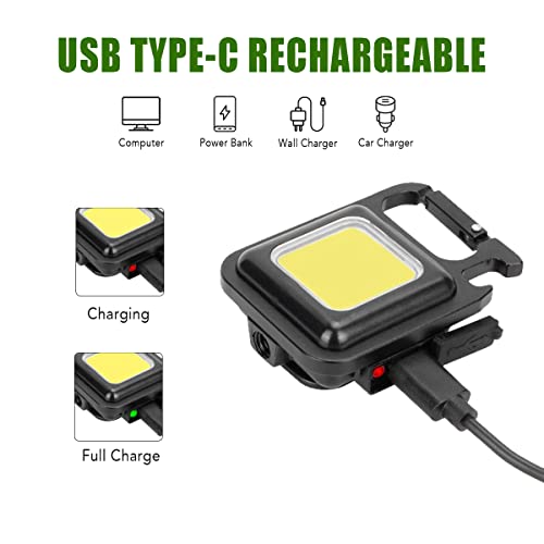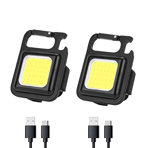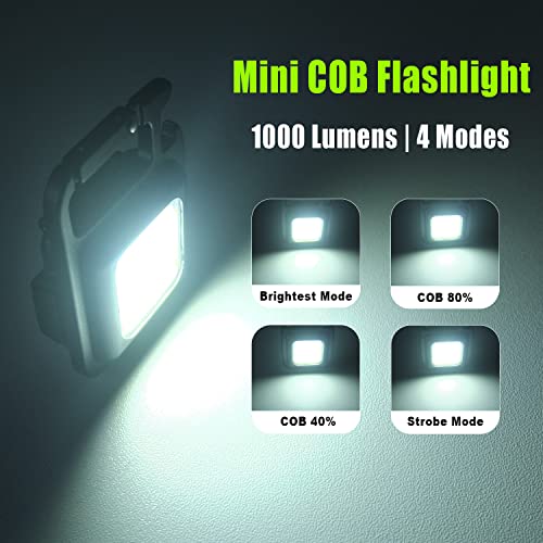 DUODEAN - Rechargeable Keychain Flashlight, 1000 Lumen Mini COB Work Light with 4 Light Modes/Bottle Opener/Magnet Base/USB C Port, Small Pocket LED Emergency Flashlights for Camping Hiking Walking (2 Pack)