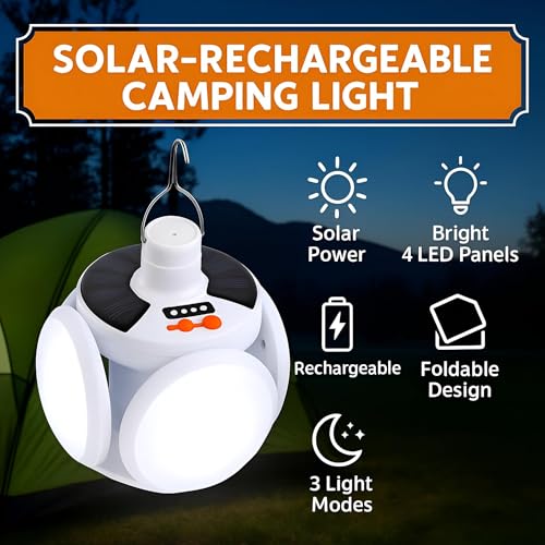 - This solar camping lamp offers versatile charging: it runs fully on solar energy during the day, and can also be charged with a USB cable. This ensures reliable lighting without depending only on electricity.
