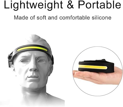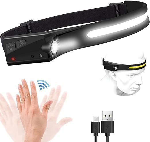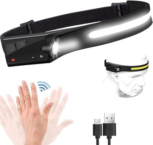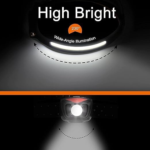 Spaceshoop - Rechargeable LED Headlamp 2 COB 230° Wide Beam with Motion Sensor and 5 Bright Light Modes, Waterproof Head Lamp for Outdoor Running Camping Hiking