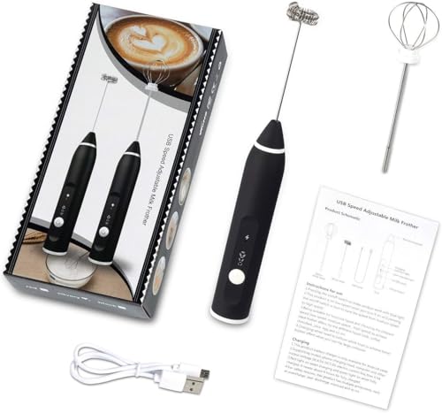 Generic - Rechargeable Milk Beater, 3 Speeds - for Coffee, Latte, Cappuccino with Bonus Egg Beater, Easy to Clean and Assemble, Powerful, One Button Control (Black)