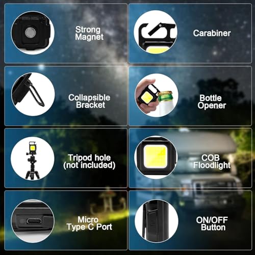 Generic - Rechargeable Mini Flashlight, Bright 3 Lighting Modes, Portable Design with Foldable Bracket, Bottle Opener, Magnetic Base, Perfect for Fishing, Walking, Camping Anytime and Anywhere