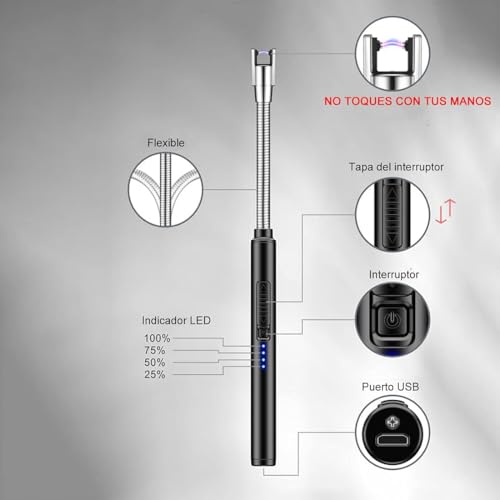 - 【ELECTRIC LIGHTER】The electric lighter lights fire via electric sparks, does not use gas or fuel, flameless, more eco-friendly, reusable than traditional matches or matches, safer and convenient to use in kitchen, camping, picnic, barbecue etc.