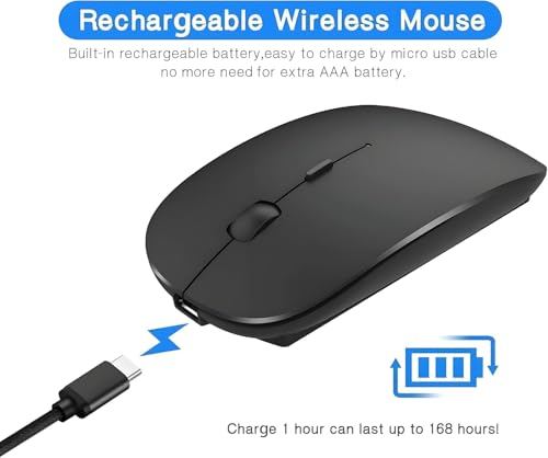 - 【Rechargeable Optical Wireless Mouse】Built-in durable 450mAh lithium rechargeable battery can last up to 500 hours after fully charged, and standby time is super long with auto sleep and wake mode. Easily recharged through the included USB cable, no need to change the battery.