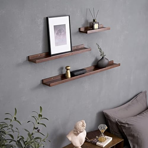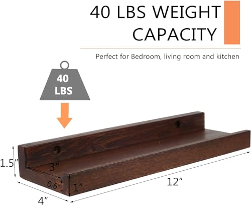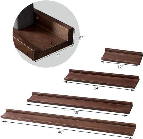 Recogwood - رفين خشبيين من الجوز، رف عائم يثبت على الحائط مقاس 30 سم، أرفف حائط من خشب الجوز الصلب، أرفف حافة الصور لغرفة النوم والحمام وغرفة المعيشة والمطبخ والمكتب المنزلي وغرفة غسيل الملابس من ريكوجوود