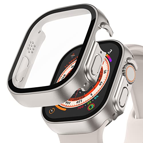 Recoppa - Recoppa 2 Pack Hard Case Compatible for Apple Watch Ultra 49mm with Tempered Glass Screen Protector, Ultra-Thin Durable Protective Cover for iWatch Starlight*2 49mm