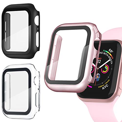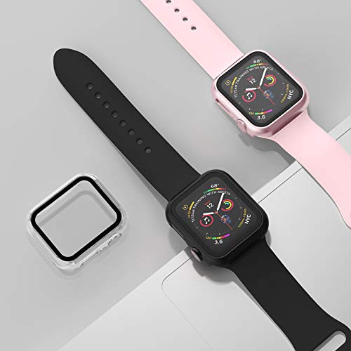 - 2 In 1 Design: Durable PC case built in slim HD clear tempered glass screen protector full cover the screen and edges. All Around protects your Apple Watch from scratch, bumps and accidental drops.