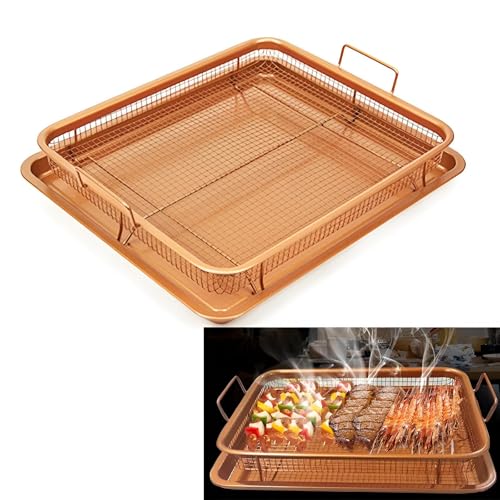 Generic - Rectangular Baking Tray - Stainless Steel Detachable Baking Tray Non-Stick Mesh Oven Tray Oil Strainer Mesh Frying Basket Grill Basket Stainless Steel Copper Plated Multi Use