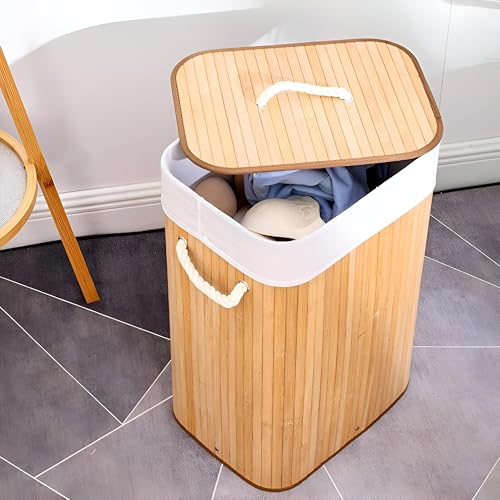 - 75-liter version with dimensions 60 by 40 cm uses bamboo wood for the lid and a cotton-lined interior, designed for travel and camping as well as daily laundry, and comes in a rectangular shape that keeps contents secure and makes storage straightforward.