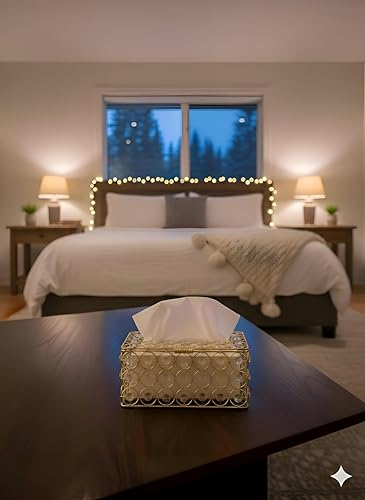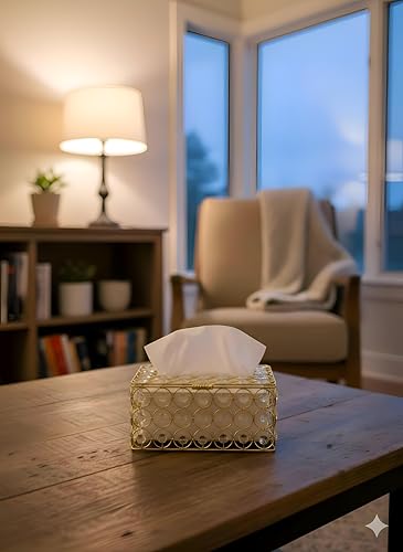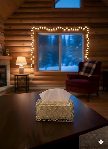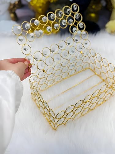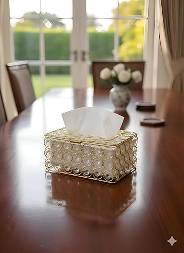 - This premium tissue box features a sleek, rectangular metallic design adorned with sparkling crystals, elevating any space with luxury and refined elegance.
