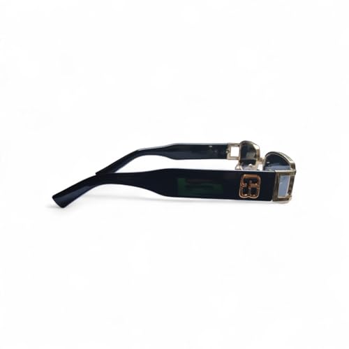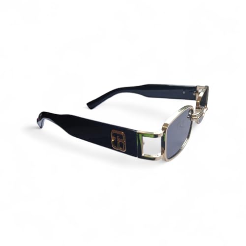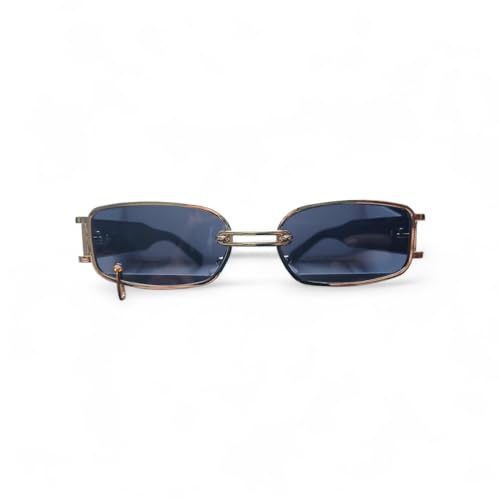 Generic - نظارات شمسية مستطيلة بإطار معدني ذهبي وردي، عدسات زرقاء، تصميم عصري بشعار مزخرف
