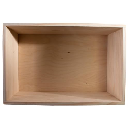 WooDeeDoo - Rectangular Wooden Open Display Presentation Box | 30 x 20 x 10 cm | Non-lidded Container Office Desktop Organiser for Storage | Unpainted & Unfinished Plain Decorative Pine