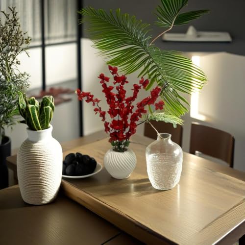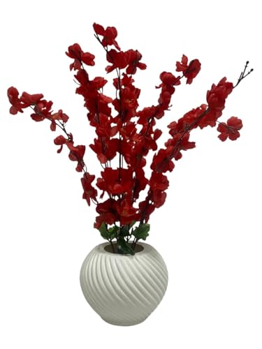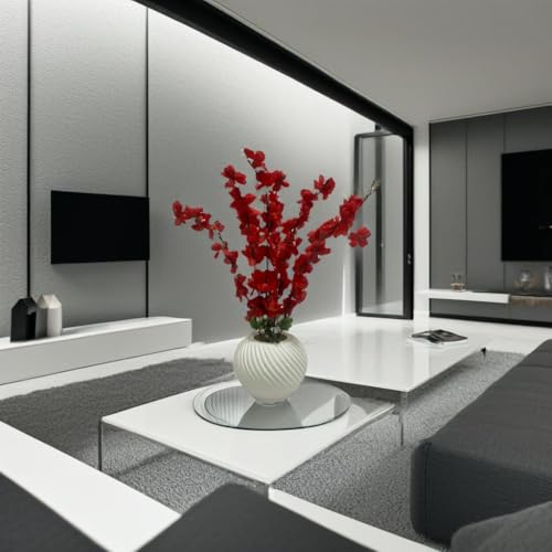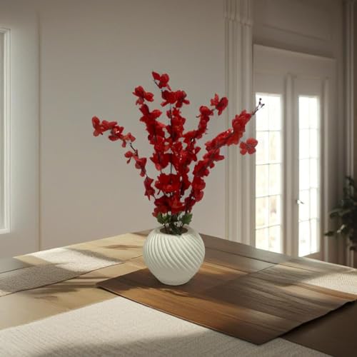 - Luxury design: Elegant white vase with unique spiral pattern with attractive artificial red flowers adds flair to any place