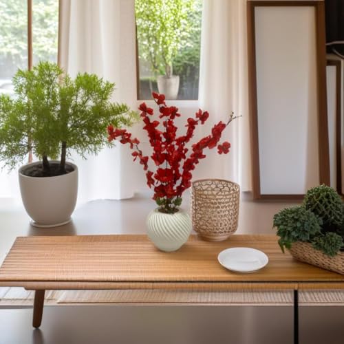 Generic - Red Artificial Flowers with White Vase Elegant Home Office Decor 17x17x50cm