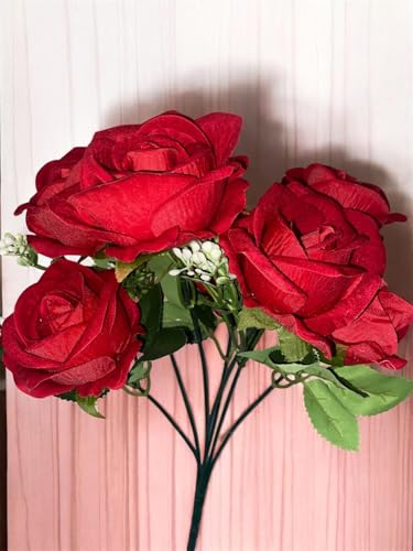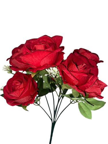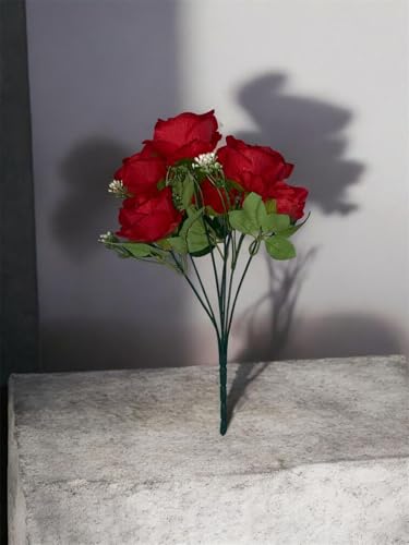 Generic - باقة ورد صناعي أحمر، تصميم أنيق وطبيعي، مع أوراق خضراء وأزهار بيضاء، مناسبة للديكور المنزلي