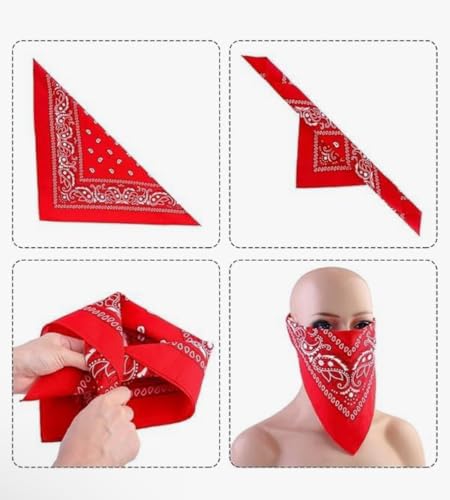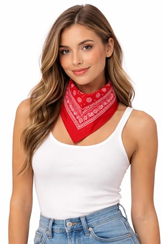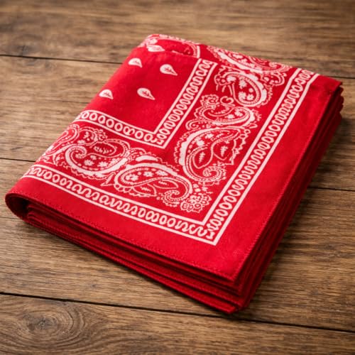 Generic - Red Bandana Scarf, Classic Paisley Print, Cotton Square Neckerchief, Multifunctional Headband