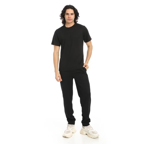 Red Circle - Red Circle Mens Black Short Sleeves Slip On T-Shirt And Pants Set T-Shirt and Pants Set