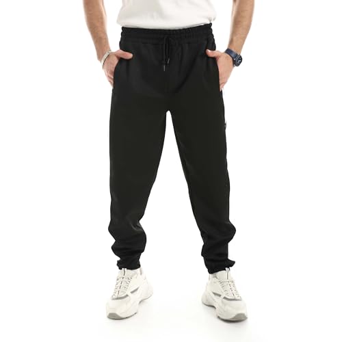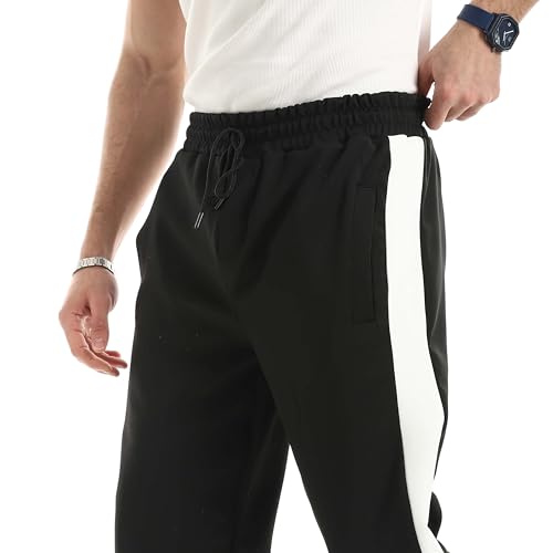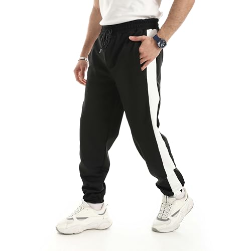Red Circle - Red Circle Mens Black with White Side Stripe Plain Sweatpants Sweatpants