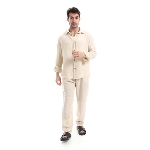 Red Circle - Red Circle Mens Linen Buttons Closure Lightweight Pants Set Linen Buttons Closure Lightweight Pants Set