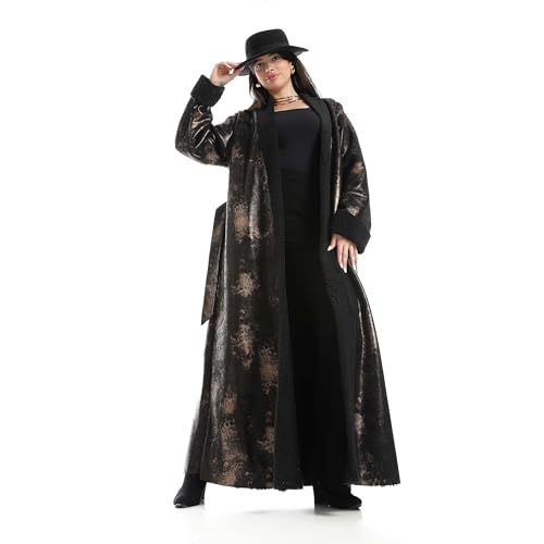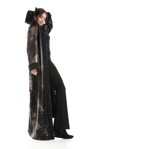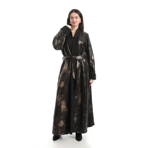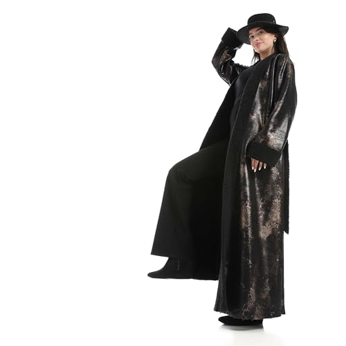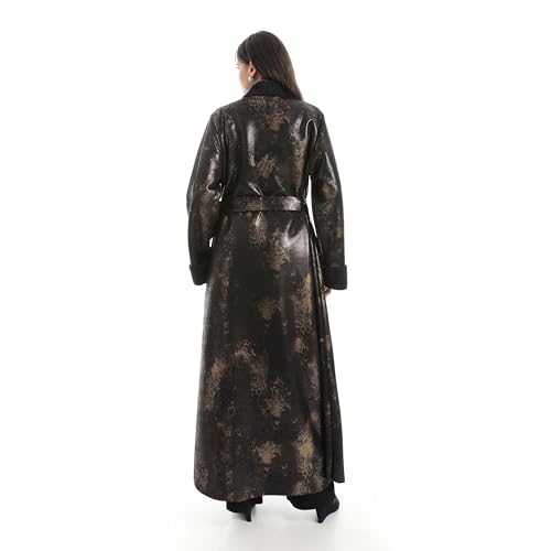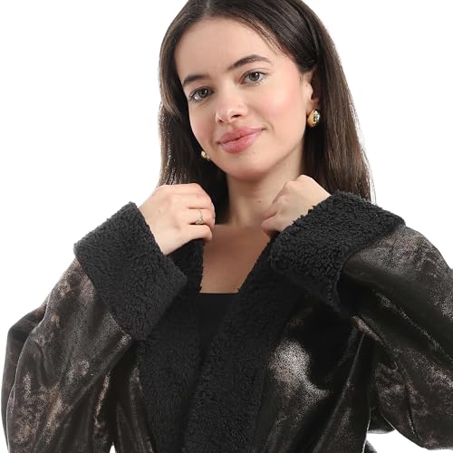 Red Circle - Red Circle Womens Metallic Black Fleeced Leather Slip On Long Coat Leather coat Fur