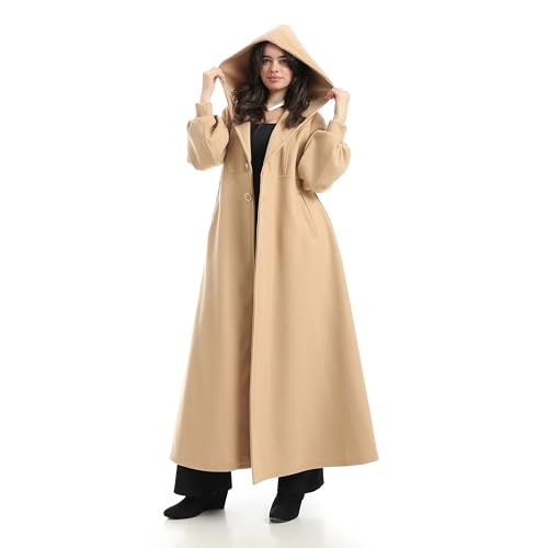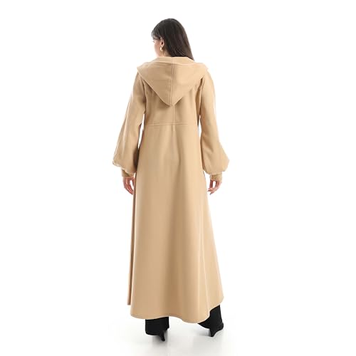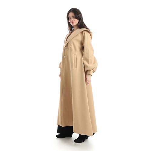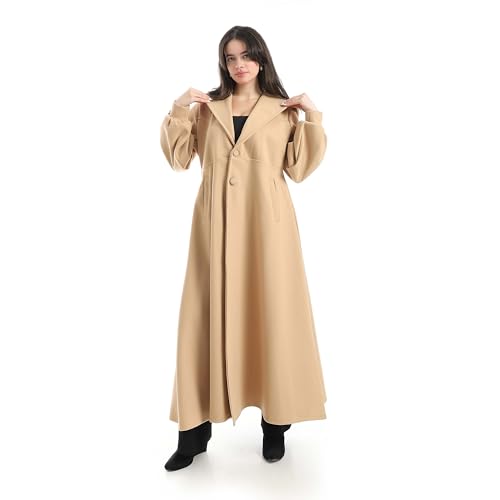 Red Circle - Red Circle Womens Slash Pockets Double Button Closure Plain Beige Long Coat coat
