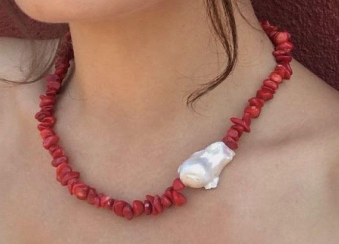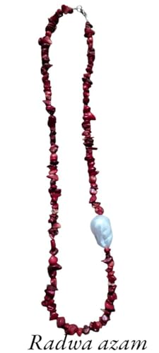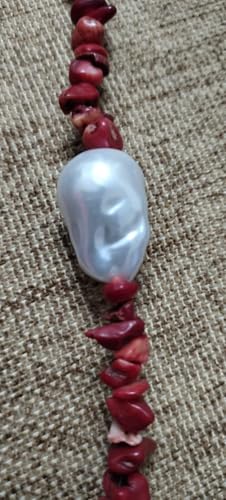 Generic - عقد بخرز مرجاني احمر مع لؤلؤ باروك مصنوع يدويا