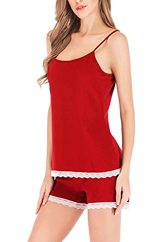 Generic - بيجامة شورت نسائى أحمر قطن بفستونة ابيض