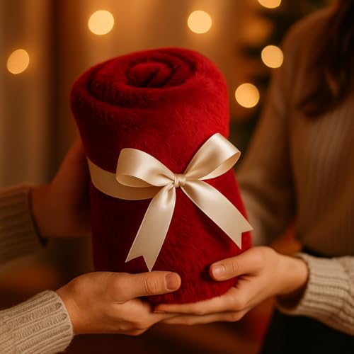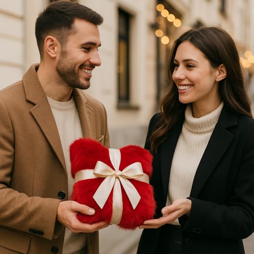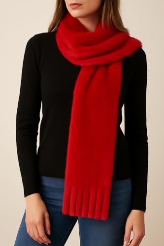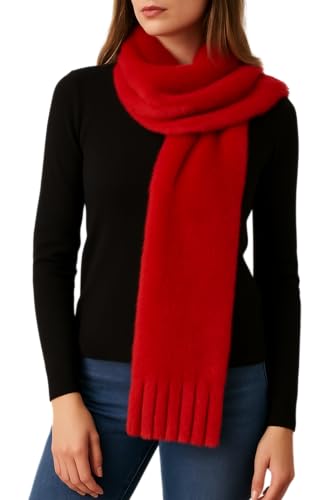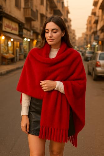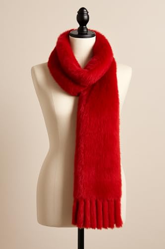 Generic - سكارف فرو صناعي احمر مع شراشيب، لف شتوي ناعم، وشاح رقبة طويل دافئ