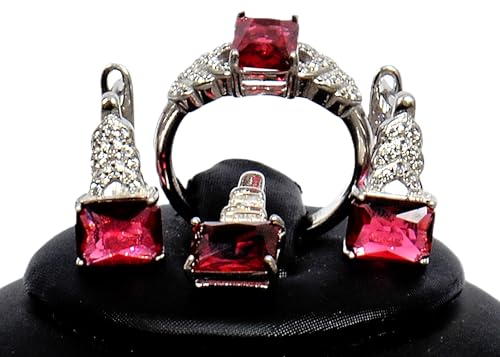 Generic - Red Gemstone Crystal Jewelry Set, Ring, Earrings, Necklace, Elegant Design