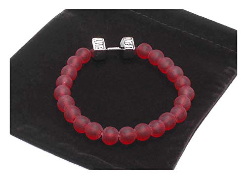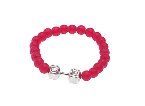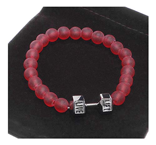 Generic - Red Glass Beads Bracelet with Silver Stainless Steel Dumbbell Male Size