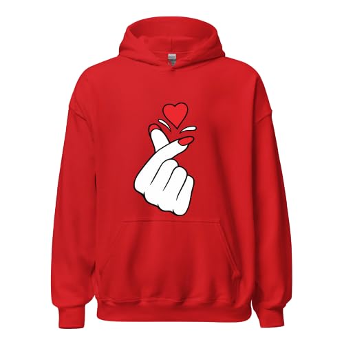 Generic - Red Hoodie with Heart Hand Graphic Print,with Kangaroo Pocket,Valentine's Day SIZE (2XL)