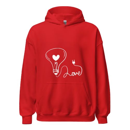 Generic - Red Hoodie with Love Light Bulb Graphic, with Kangaroo Pocket Valentine's Day SIZE (L)