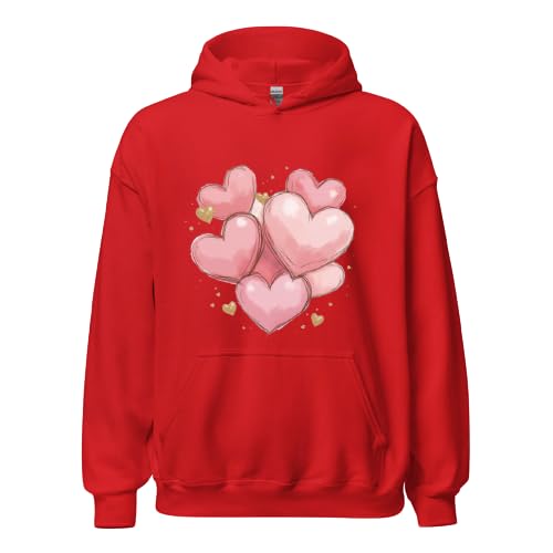 Generic - Red Hoodie with Pink Hearts Design, Valentine's Theme, with Pocket SIZE (2XL)