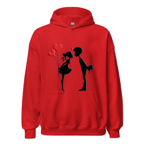 Generic - هودي احمر مع تصميم صورة ظلية رومانسية للزوجين، بالونات القلب موضوع عيد الحب، مقاس (3XL)