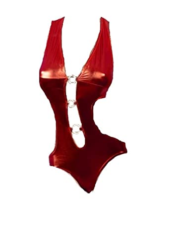 Generic - لانجيري جذاب برقبة شكل V من الجلد للنساء بلون احمر