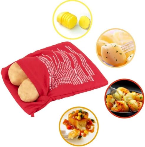 Generic - كيس طهي البطاطس في الميكروويف باللون الأحمر من بيجوي بيل، تصميم مثالي وعملي من قطعة واحدة، قابل للغسل وإعادة الاستخدام