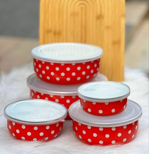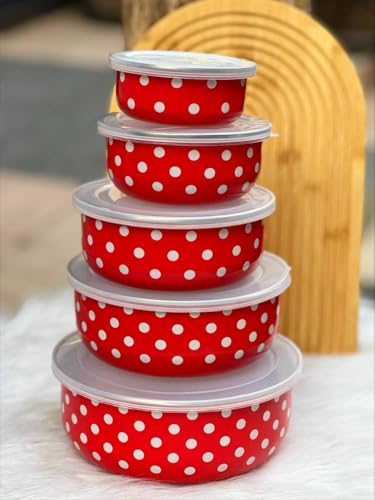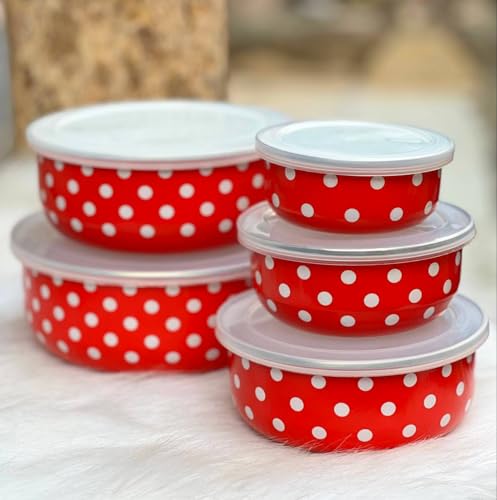 Generic - Red Polka Dot Design 5 Piece Food Container Set - Fridge Organizers Assorted Sizes from 250ml to 1L, Airtight Lids and Space Saving Design