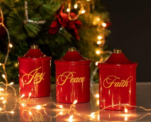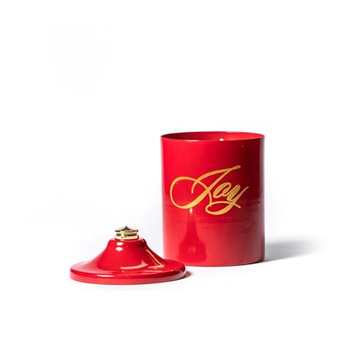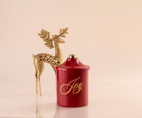 Candle Connection - Red SandalWood &Ginger Scented Candle Cup with Pyramid Shaped lid 8.5CM D x 10CM H, Decorated with JOY in Gold Vinyl Approx Burn Time 70 Hours