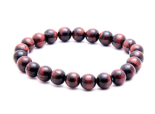 generic - Red Tiger Eye Bracelet Natural Crystal Healing Gemstone Bracelet for Men & Women, Color Red, Bead Size 8 mm, 7 Inch, Crystal, Stone