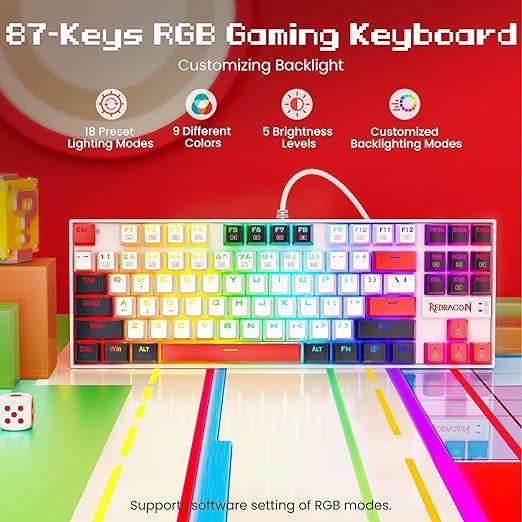 Generic - كيبورد العاب ميكانيكي ايليت K552 من ريداجون - مفاتيح حمراء خطية - اضاءة خلفية بالوان قوس قزح - كيبورد سلكية للالعاب والكتابة -هيكل معدني متين عربي/انجليزي (بولار مونوليث, K552WGL)