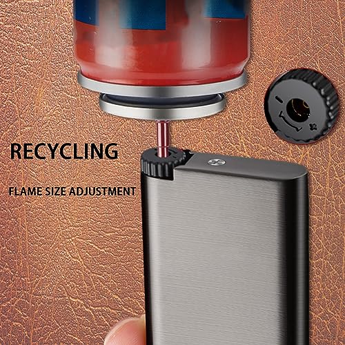 - Adjustable & refillable - This flame lighter has a pure copper filling hole and adjustable flame size adjustment wheel at the bottom, the zinc alloy material is more sealed than the traditional lighter filling hole, not easy to leak. You can refill your own butane fuel, you just need to invert the lighter vertical to inflate, recycling more environmentally friendly.