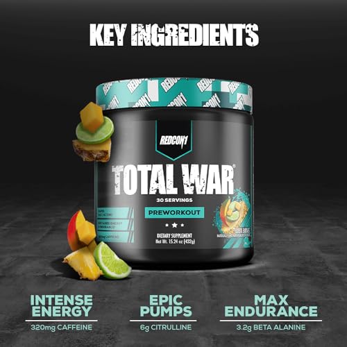 - ريد كون١ مسحوق ما قبل التمرين من توتال وور، باجا بومب - بيتا ألانين + سيترولين مالات كيتو مناسب للتمرين قبل التمرين للرجال والنساء مع 320 ملغ من الكافيين - سريع المفعول (30 حصة)