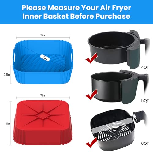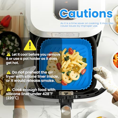 - Cool Kitchen Gadgets -The 2pcs square air fryer liners can be applied to the 4-6QT air fryers, preventing the food from being placed directly in the air fryer silicone basket, which may increase the difficulty of cleaning. Just preheat the fryer, put reusable air fryer liners silicone with food in the air fryer, and set the time, and then you can enjoy your meal time. Note: freshly baked food is hot, it's better to wait a while or wear gloves to take the air fryer inserts out