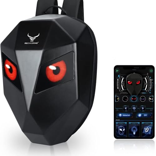 REDHORNS - REDHORNS LED Knight Laptop Bag Motorcycle Riding Backpack | Hard Shell LED Motorbike Luggage | Waterproof Backpack | DIY Daypack for Travelling Camping Cycling Storage Bag, Black, 13X 7.5X 18.8 inch,