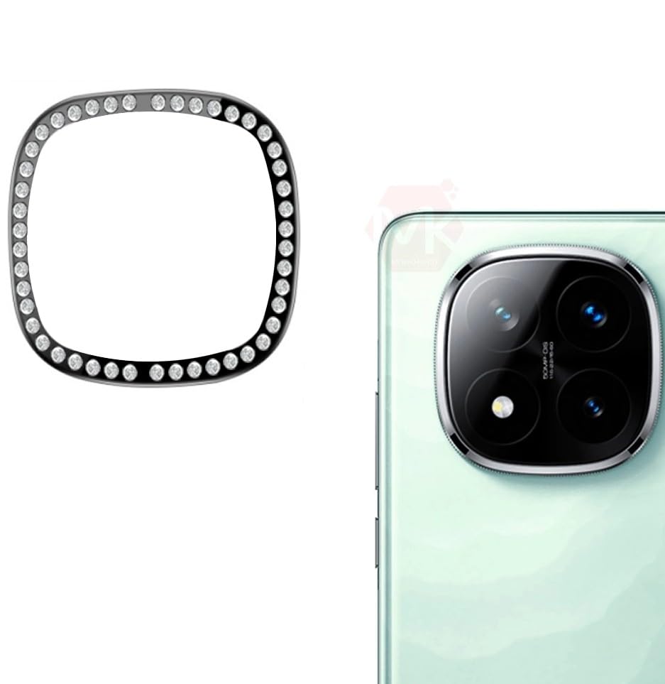 ELMO3EZZ - Redmi note 14 Pro Plus Camera Lens Protector, [4TH Gen New Bling Design] Glitter Shiny Diamond Metal Ring Tempered Glass Back Camera Screen Protector Lens Cover (Black)
