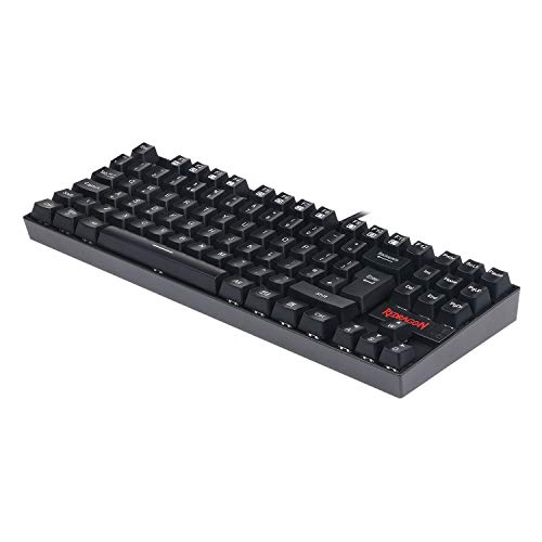 - Tenkeyless compact mechanical gaming keyboard Redragon K552 Kumara TKL small compact with dust proof mechanical switches Linear switches quiet click sound fast action with minimal resistance without a tactile bump feel