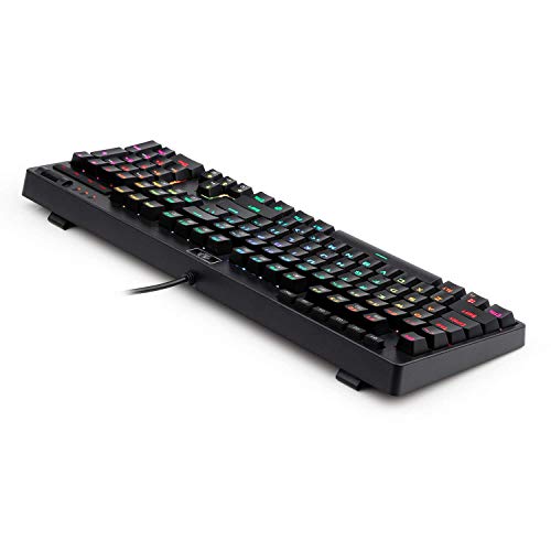 Redragon - لوحة مفاتيح ميكانيكية للالعاب طراز K579 من ريد دراجون باضاءة ليد خلفية و104 مفتاح ومفاتيح ماكرو، ملائمة للكمبيوتر واللاب توب وتتميز بمفاتيح تشيري بلو توفر صوت نقر مميز.
