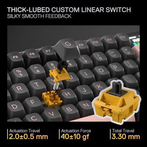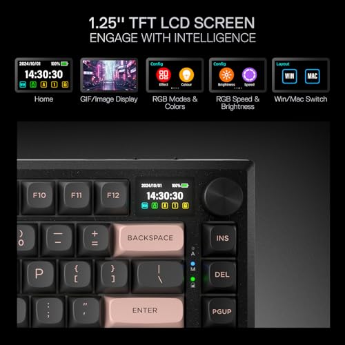 - Smart Info-Island Screen - 1.41 inch TFT info center screen that collects keyboard information, connection mode, battery status and typing status and revealing everything you want to know. Enjoy custom GIF memes for the current mood