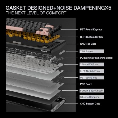 - GASKET DESIGN - The body structure is different from traditional screw fixation by using precision locked covers with seals to aid noise reduction and flexibility. It provides even feedback, while the vertical padding reduces rigid noise and gives a clear, clean and softer typing experience