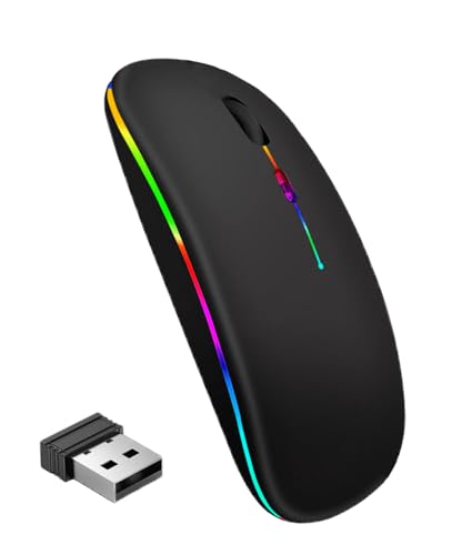 REDRAY - ماوس بلوتوث لاسلكي بإضاءة LED قابلة لإعادة الشحن بمنفذ USB 2.4 جيجاهرتز للكمبيوتر وماك بوك برو/اير/ماك/ايباد/كروم بوك/صامت/تتبع سلس ومريح للمكتب من ريدراي (أسود)