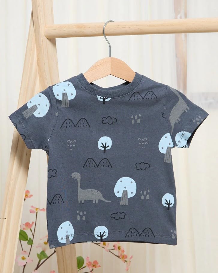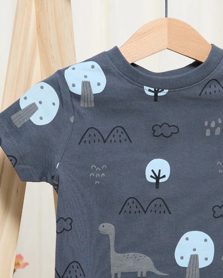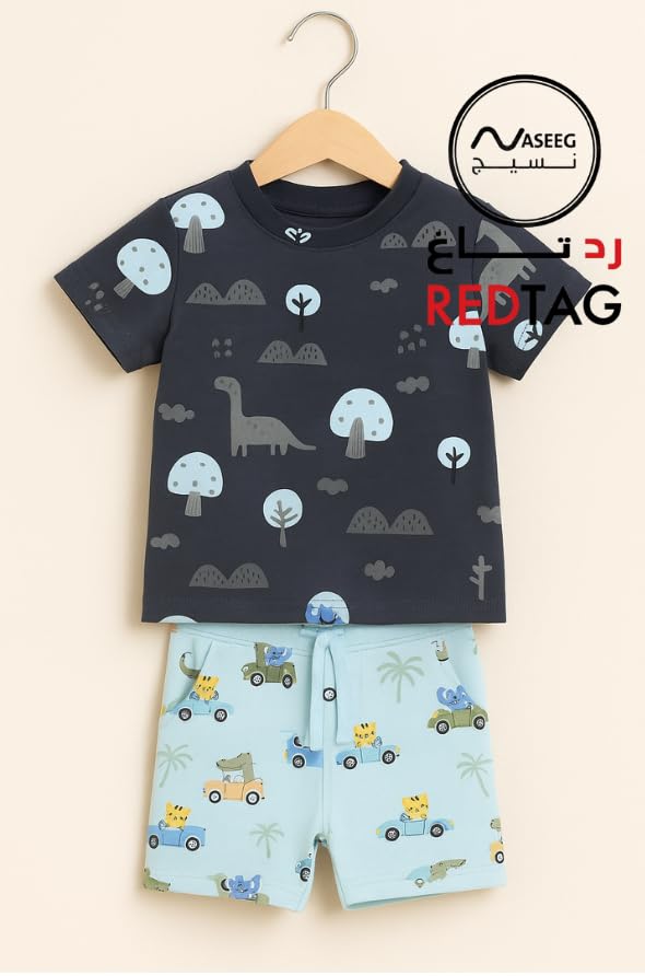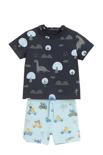 Generic - REDTAG, Baby Boy Dinosaur T-Shirt and Shorts Set, Navy Blue and Light Blue, 100% Cotton, Printed Design, for Ages 18-24 Months